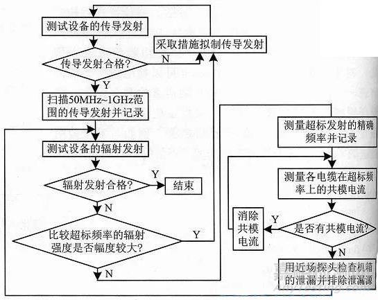 下圖給出了一個(gè)設(shè)備或系統(tǒng)的電磁干擾發(fā)射與故障分析步驟。按照這個(gè)步驟進(jìn)行,可以提高測(cè)試診斷的效率。