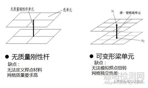 焊點失效的問題以往都需要等到實車碰撞后才能判斷,但隨著有限元技術的發(fā)展和計算機性能的提高,采用數(shù)值模擬提前預測、對標焊點失效的仿真方法逐漸得到重視,在這過程中通過大量的理論與實驗研究產(chǎn)生了多種焊點失效判據(jù)。