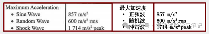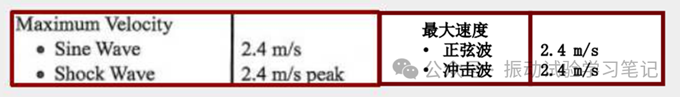 若正弦波和隨機(jī)波的額定推力相等,顯示的最大加速度值兩者也相等。 在沖擊試驗(yàn)中,由于額定推力比較大(通常兩倍于正弦額定推力),可對應(yīng)最大加速度值也比較大, 即[303m/s²×2 = 606m/s²]。