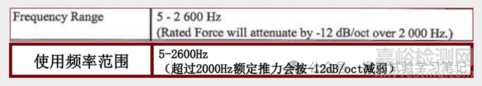 動圈的共振決定振動試驗(yàn)機(jī)系統(tǒng)的使用頻率范圍。超過2000Hz,額定推力將按照-12dB/oct減弱。-12dB即1/4倍額定推力,也就是每隔一個oct額定推力減弱1/4。使用頻率范圍也受夾具和試驗(yàn)體的影響,共振和反共振不僅使試驗(yàn)不可控制,也會對振動系統(tǒng)的電氣和機(jī)械原件造成損傷。