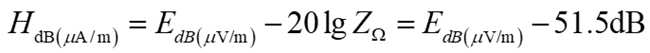 7. 電場強(qiáng)度dBμV/m與磁場強(qiáng)度dBμA/m之間的換算