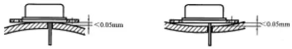 a) 散熱片彎曲、凸起或凹陷,在螺絲孔處的間距要小于0.05mm(如圖5所示)。