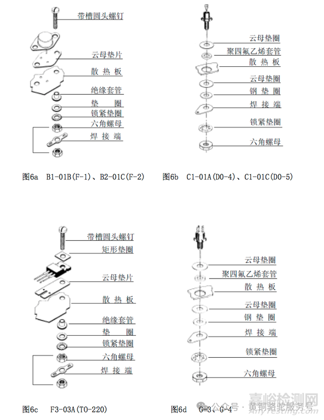 12) 建議使用下列裝配零件,如襯墊、墊圈、焊片等。圖6給出了幾種常見外形器件中的散熱板安裝說明。