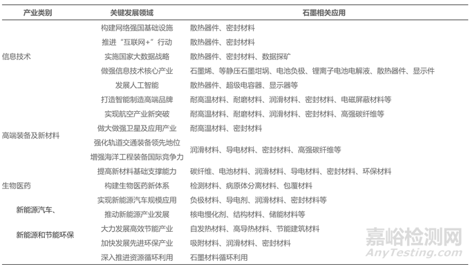 表1 石墨在我國戰(zhàn)略性新興產(chǎn)業(yè)領域的主要應用