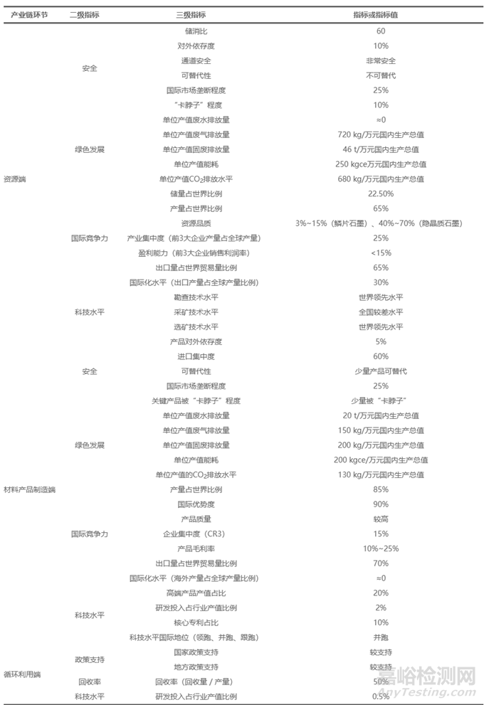 表4 中國石墨產(chǎn)業(yè)高質(zhì)量發(fā)展水平指標體系