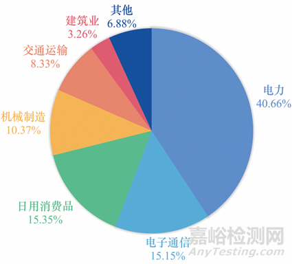 2021年,我國(guó)銅材產(chǎn)量為1.99×107 t,占全球銅材總產(chǎn)量的62%,連續(xù)18年蟬聯(lián)世界最大的銅材生產(chǎn)國(guó)和消費(fèi)國(guó),行業(yè)主營(yíng)業(yè)務(wù)收入超萬(wàn)億元。“十三五”以來(lái),我國(guó)銅加工行業(yè)的產(chǎn)品結(jié)構(gòu)實(shí)現(xiàn)持續(xù)優(yōu)化,圖1為我國(guó)銅加工材的消費(fèi)情況,電力行業(yè)仍是銅消費(fèi)量最大的行業(yè);電子通信行業(yè)作為新興產(chǎn)業(yè),包括廣播通信、電視、電子計(jì)算機(jī)、雷達(dá)、電子元器件等行業(yè),均使用大量精細(xì)的銅、銅合金及加工材,耗銅量占比15.15%;日用消費(fèi)品耗銅量占比15.35%;機(jī)械制造業(yè)耗銅量占比10.37%;交通運(yùn)輸業(yè)年均耗銅量占全國(guó)銅消費(fèi)量的8.33%左右,尤以汽車工業(yè)最為突出,我國(guó)汽車產(chǎn)量增長(zhǎng)速度很快,耗銅量也相對(duì)增加,鐵路、船舶、航空等也是耗銅量較大的部門(mén);建筑用水管、裝飾材料、結(jié)構(gòu)材料等年均耗銅量占我國(guó)銅消費(fèi)量的3.26%,遠(yuǎn)低于美國(guó)和日本的水平,這也是我國(guó)尚屬于發(fā)展中國(guó)家的表現(xiàn)之一。隨著我國(guó)經(jīng)濟(jì)、社會(huì)不斷發(fā)展,銅、銅合金與復(fù)合材料、銅化合物也廣泛用于農(nóng)牧業(yè)、生命健康等領(lǐng)域。我國(guó)雖然是銅加工和消費(fèi)大國(guó),但在先進(jìn)銅基材料的研發(fā)體系布局、整體科技實(shí)力、新材料自主設(shè)計(jì)和應(yīng)用水平、資源和裝備保障能力等方面還與西方發(fā)達(dá)國(guó)家存在較大差距。