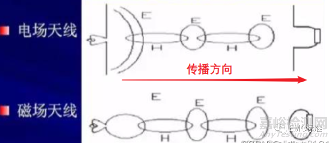 4、無論場源是電場源還是磁場源,當離場源的距離大于λ/2π以后,都變成了遠場,又稱輻射場。這時電場和磁場方向垂直并且都和傳播方向垂直,稱為平面波。