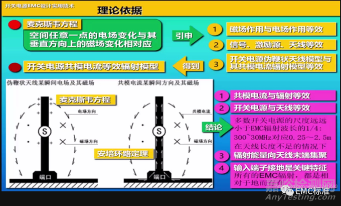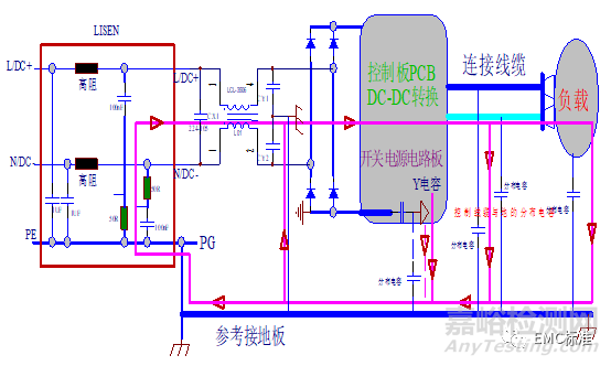 1、上圖可看出開關電源輸入/輸出電纜對地產生的共模電流會產生磁場,即電纜可看成一根天線。