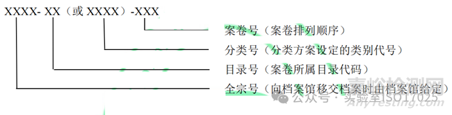 6.3.5、檔案的檔號按照各單位檔案分類方案給定,一般由全宗號、目錄號(或分類號)、案卷號構(gòu)成。示例如下: