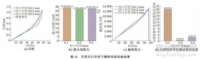 3.1刃口半徑對(duì)螺栓雙剪試驗(yàn)結(jié)果的影響