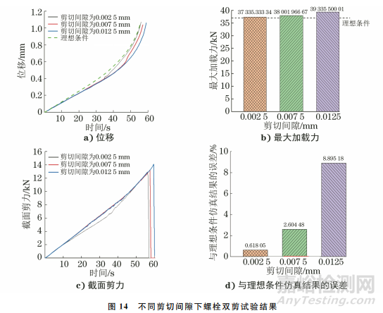 3.2剪切間隙對(duì)螺栓雙剪試驗(yàn)結(jié)果的影響