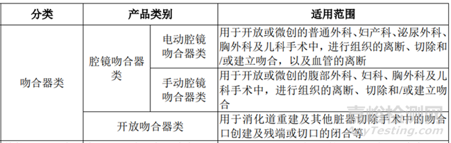 (1)吻合器分類及適用范圍分析