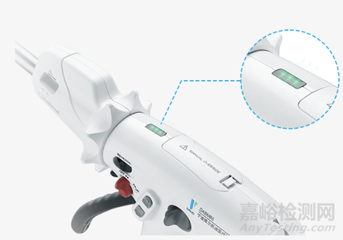 當(dāng)夾閉合適厚度的組織時(shí),器械上的指示燈會(huì)給予綠色提示,告知術(shù)者將有完美的縫合。