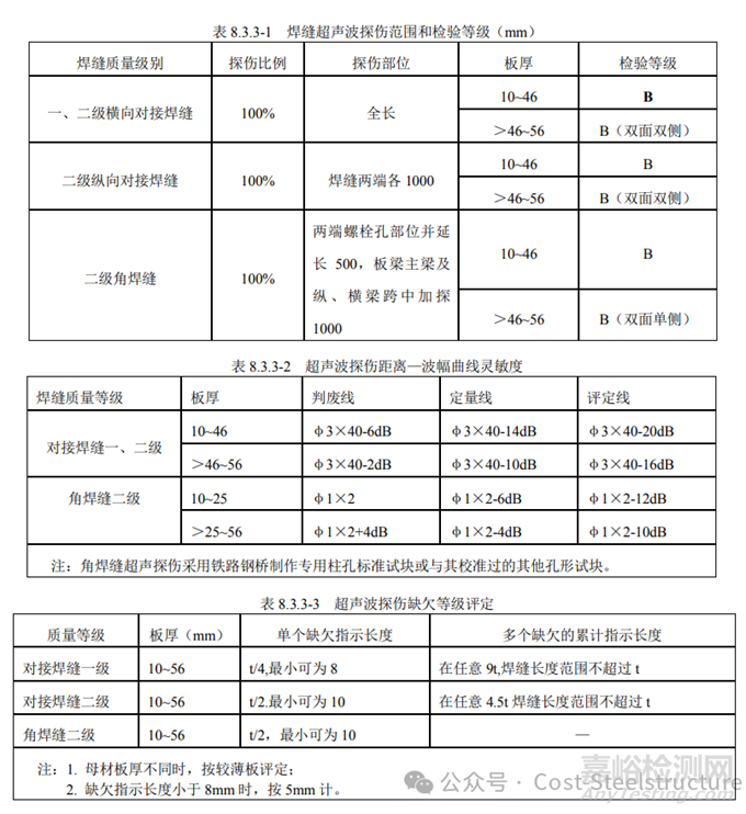2、檢測范圍和檢驗等級應(yīng)符合表 8.3.3-1的規(guī)定。