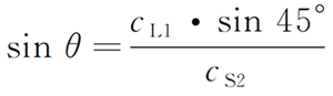 為使鋼瓶中產(chǎn)生45°的橫波折射角,相控陣探頭傾斜角度θ為: