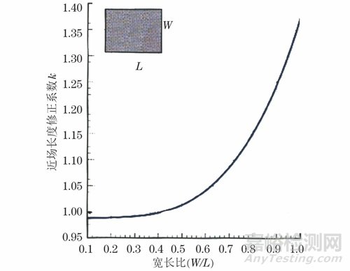 式中:k為矩形的近場修正系數(shù)(見圖6);L為探頭長度;W為探頭寬度;λ為超聲波波長。