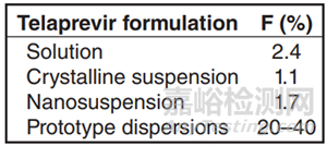 圖3 Telaprevir不同處方生物利用度統(tǒng)計(jì)4