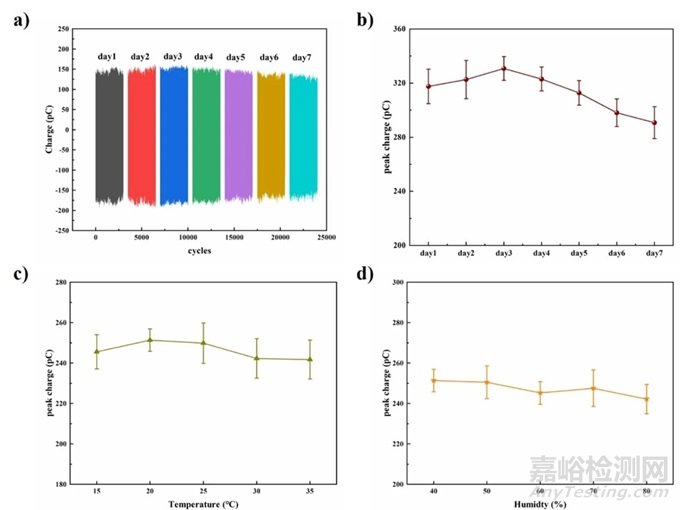 圖3:a) 和 b)循環(huán)穩(wěn)定性;c) 溫度穩(wěn)定性;d) 濕度穩(wěn)定性(圖片來自原文)