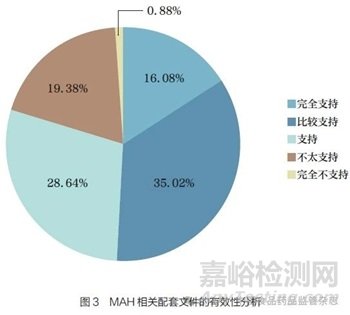 調(diào)研結(jié)果顯示(圖3),79.74% 的調(diào)研對象認為現(xiàn)有MAH 制度的相關(guān)配套文件能夠有效支持( 包括支持、比較支持、完全支持)MAH 上述責任的落地實施。有20.26% 的調(diào)研對象認為現(xiàn)有配套文件不支持(包括不太支持、完全不支持)MAH 上述責任的落地實施,提示現(xiàn)有配套文件仍有不足,需要完善。