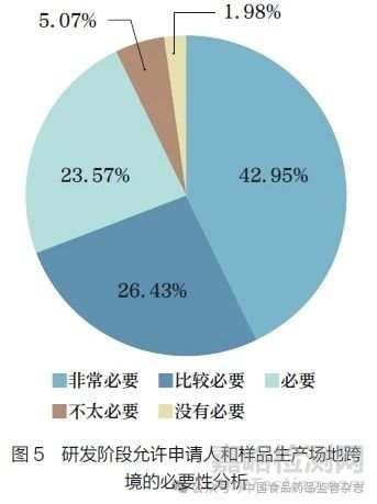 調(diào)研結(jié)果顯示(圖5),92.95% 的調(diào)研對象認為有必要(包括必要、比較必要、非常必要)允許創(chuàng)新藥臨床試驗(IND)申請人和樣品生產(chǎn)場地跨境(境內(nèi)申請人境外生產(chǎn)或境外申請人境內(nèi)生產(chǎn)),反映了行業(yè)內(nèi)該需求的迫切性。按照調(diào)研對象所處的工作領(lǐng)域進行分層分析,結(jié)果無明顯差異。我國目前對IND 申請人和臨床樣品生產(chǎn)場地的“跨境”尚未建立明晰的申報路徑和管理要求。隨著新藥研發(fā)全球化進程的不斷加快,全球合作和分工加速了藥物創(chuàng)新研發(fā)模式的發(fā)展,因而臨床試驗期間對申辦者(申請人)和臨床研究樣品生產(chǎn)場地“跨境”的需求將更加迫切。