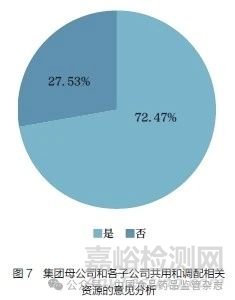 調(diào)研結(jié)果顯示(圖7),72.47% 的調(diào)研對象認為應允許集團下質(zhì)量管理體系、藥物警戒體系及人員配置等在母公司和各子公司間共用和調(diào)配。按調(diào)研對象所在工作領(lǐng)域進行分層分析,結(jié)果表明,監(jiān)管領(lǐng)域的調(diào)研對象認可集團內(nèi)資源共用的占比略低(68.75%),其余領(lǐng)域占比無明顯差異。允許MAH 集團母公司和子公司之間資源共享可以優(yōu)化資源,是體現(xiàn)MAH 制度優(yōu)勢的重要方面。同時,母公司和子公司或者各子公司之間體系、資源和關(guān)鍵崗位人員的共用和調(diào)配可能增加監(jiān)管復雜性,需綜合考慮提出優(yōu)化建議。
