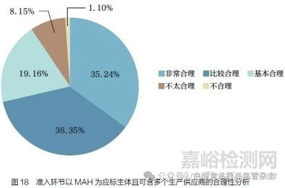 調(diào)研結(jié)果顯示(圖18),90.75% 的調(diào)研對象認為在醫(yī)保招標等環(huán)節(jié),對于同一MAH 存在多個產(chǎn)地或有多家受托企業(yè)情形, 采用以MAH 為應標主體,且同一MAH 可包含多個生產(chǎn)供應商的做法是合理的(包括基本合理、比較合理和非常合理)。從多數(shù)調(diào)研對象建議以MAH 為應標主體來看,在藥品醫(yī)保招標等環(huán)節(jié)明確MAH 為應標主體可以進一步強化MAH 在藥品全生命周期的主體責任。