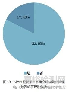 調(diào)研結(jié)果顯示(圖19),82.60% 的調(diào)研對象認為MAH可以委托第三方建立藥物警戒管理體系,17.40% 的調(diào)研對象表示不同意。2021 年5 月13 日,國家藥監(jiān)局頒布的《藥物警戒質(zhì)量管理規(guī)范》[7](GVP)是新修訂的《藥品管理法》實施以來首個藥物警戒配套文件。GVP 規(guī)定,“持有人是藥物警戒的責任主體,根據(jù)工作需要委托開展藥物警戒相關(guān)工作的,相應法律責任由持有人承擔”“持有人委托開展藥物警戒相關(guān)工作的,雙方應當簽訂委托協(xié)議”。目前GVP 規(guī)定可以委托第三方建立藥物警戒管理體系。調(diào)研結(jié)果反映,大部分調(diào)研對象認可目前GVP 的規(guī)定。