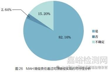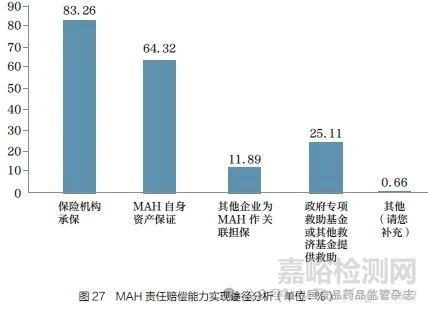 調(diào)研結(jié)果顯示(圖26),82.16% 的調(diào)研對象認為應借鑒國外監(jiān)管經(jīng)驗,通過司法途徑實現(xiàn),以更好地落實MAH 的賠償責任。