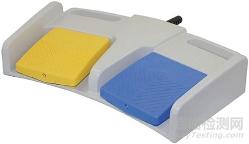 防止塑料積聚靜電在醫(yī)療電子設(shè)備中也至關(guān)重要。如下圖中的腳踏開關(guān),這三種不同顏色(藍(lán)色、黃色和灰色)的組件是用Eurotec的Tecomid 25%玻璃纖維增強(qiáng)聚酰胺(PA6)生產(chǎn)的,該聚酰胺含有永久性防靜電劑,可以耗散靜電。