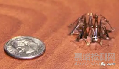 其中植入物是一件類似于自擴張的金屬籠,雙盤設(shè)計,中心有一個開口。植入物是具有X射線顯影和超聲反饋,使其在植入過程能夠通過影像觀察。植入物的每一側(cè)都有9條腿,并且其中LA側(cè)在每條腿的末端具有顯影設(shè)計。植入物的LA側(cè)是平坦的,以允許腿與LA壁平齊,從而使植入物展開時LA輪廓最小。右心房側(cè)彎曲以適應(yīng)可變的隔膜壁厚度,僅腿部末端接觸右心房壁。完全擴張時植入物的外徑為19.4mm,內(nèi)徑為8mm。