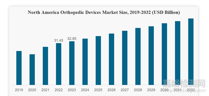 以北美骨科器械為例,其市場規(guī)模趨勢如下: