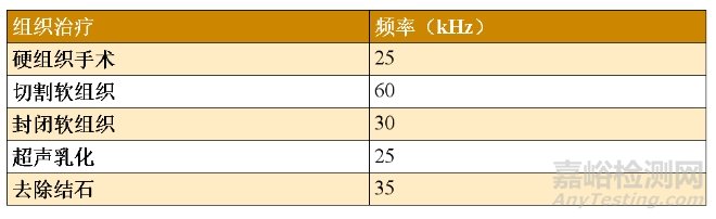 表1:用于組織手術(shù)的典型超聲頻率。
