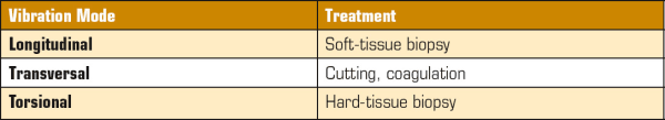 表2:針對(duì)不同組織治療時(shí)的超聲振動(dòng)模式。