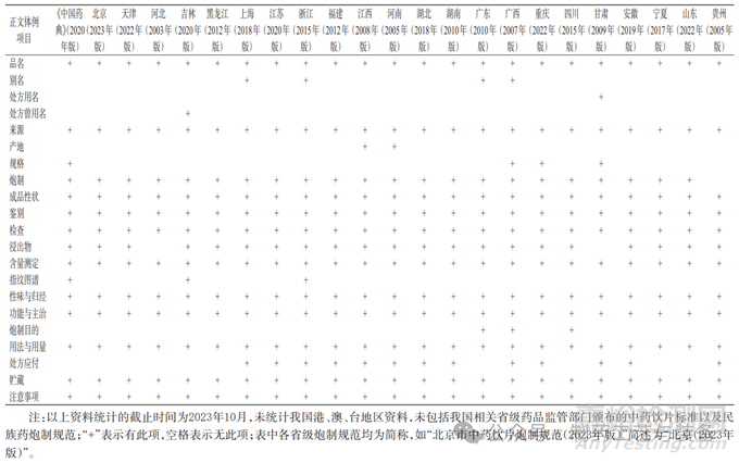 表3 《中國藥典》與省級中藥飲片炮制規(guī)范正文體例項目比較