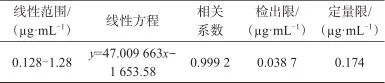 表1 質量濃度線性范圍、線性方程、相關系數(shù)、檢出限和定量限