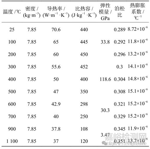 焊接仿真所使用的材料參數(shù)具有隨溫度變化的材料屬性。試驗所用控制臂材料為FB60 鋼,其在高溫條件下的熱物理性能鮮有研究。因此,筆者采用試驗的方法對FB60 鋼在不同溫度下的物理性能和力學(xué)性能進行了測量。FB60 鋼各元素的質(zhì)量分?jǐn)?shù)如表1 所示,隨溫度變化的熱物理參數(shù)與力學(xué)特性參數(shù)如表2 所示。