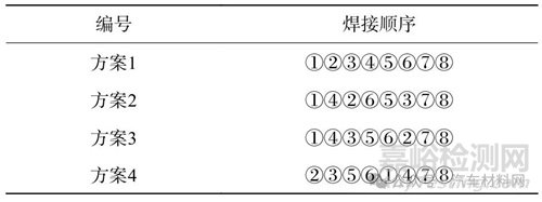 表4 施焊順序方案