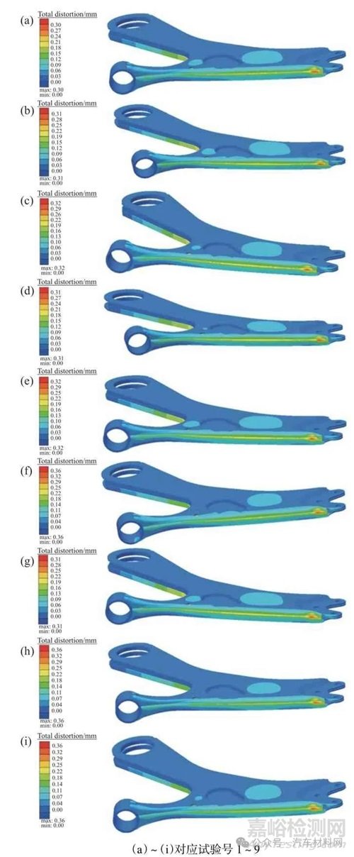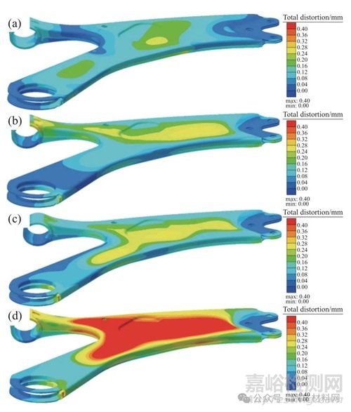 Fig.7 Deformation distribution in control arm with different welding sequence