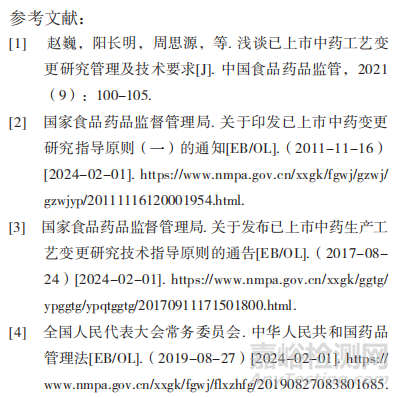 為適應(yīng)中藥制劑的特點和變更規(guī)律,杜絕生搬硬套化藥標(biāo)準(zhǔn)和原則,2021年國家藥品監(jiān)督管理局藥品審評中心(以下簡稱國家藥審中心)發(fā)布了《已上市中藥藥學(xué)變更研究技術(shù)指導(dǎo)原則(試行)》[7],增加了變更注冊標(biāo)準(zhǔn)的相關(guān)規(guī)定,在藥學(xué)方面完善了中藥制劑變更的技術(shù)要求,富含中藥特性的質(zhì)量評價指標(biāo)“出膏率、浸出物、指紋圖譜”也列入了該指導(dǎo)原則質(zhì)量對比研究工作中。2023年廣東省結(jié)合本省藥品上市后變更情況的規(guī)范管理工作,頒布了《廣東省藥品監(jiān)督管理局藥品上市后變更管理實施細(xì)則》[8],在溝通交流、前置預(yù)審、現(xiàn)場核查和藥品檢驗等程序上細(xì)化了具體要求。