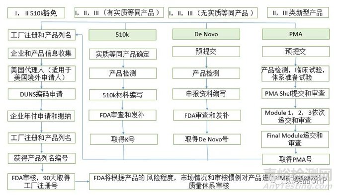 在明確了以上信息后,企業(yè)就可以著手準(zhǔn)備有關(guān)的申報資料,并按一定程序向FDA申報以獲取醫(yī)療器械FDA認證批準(zhǔn)。對于任何產(chǎn)品,企業(yè)都需進行企業(yè)注冊(Registration)和產(chǎn)品列名(Listing)。