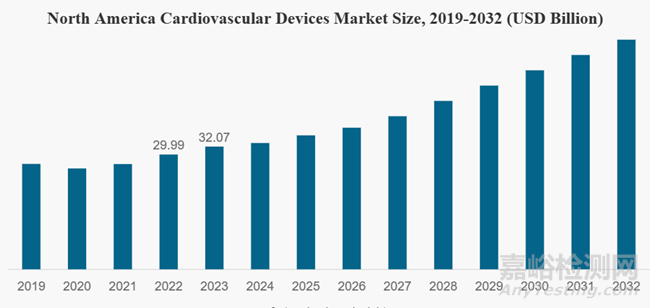 以北美心血管器械為例,其市場(chǎng)規(guī)模趨勢(shì)如下:
