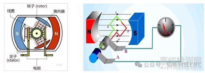有刷電機噪聲的產(chǎn)生,是因為換向器與碳刷之間的不斷切換,出現(xiàn)高頻的拉弧,從而出現(xiàn)EMC噪聲,此噪聲還會因為轉(zhuǎn)速快慢,電壓高低與電流大小,分別體現(xiàn)出不同的EMC測試數(shù)據(jù)。而在換向頻繁的電機上,EMC噪聲的產(chǎn)生,不僅與碳刷和換向器有關,還與“反向電動勢”有關。