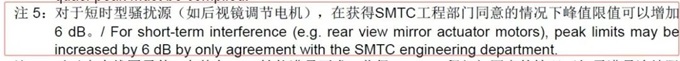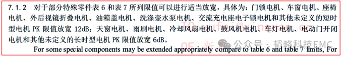 而此類騷擾源,在每個車廠或者通用標準文件中,都會有放寬測試限制的明文說明: