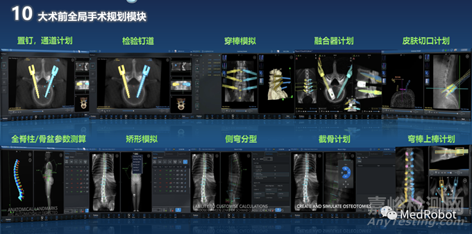術(shù)前計(jì)劃使用患者的CT數(shù)據(jù),憑借Mazor X™?的解剖洞察引擎,識(shí)別關(guān)鍵解剖結(jié)構(gòu),通過(guò)全局術(shù)前規(guī)劃軟件結(jié)合人工智能,輔助醫(yī)生進(jìn)行多種手術(shù)規(guī)劃,包括螺釘、皮膚切口、通道、融合器規(guī)劃,脊柱參數(shù)測(cè)算,畸形分型,截骨矯形模擬等,為患者制定進(jìn)行個(gè)性化、定制化的全局手術(shù)規(guī)劃,提升制定手術(shù)計(jì)劃的高效性和全面性。