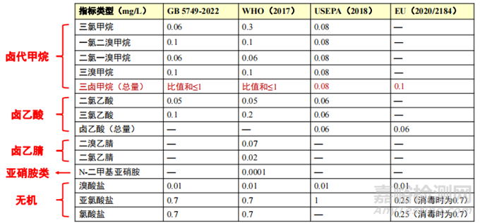 我國未考慮毒性遠大于三鹵甲烷的鹵乙腈類和N-二甲基亞硝胺等物質。
