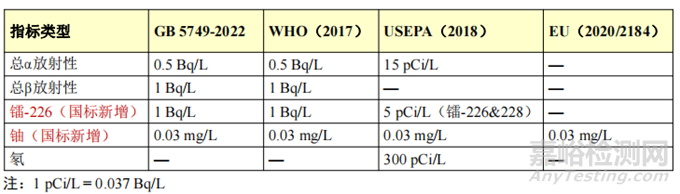 國內(nèi)外飲用水標準對比