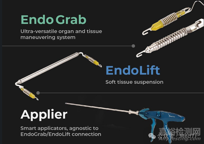 MicroAnchoring根據(jù)手術(shù)需要,衍化出兩種類型:EndoGrab和EndoLift,以及輸送系統(tǒng)Applier。
