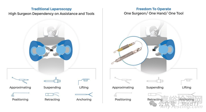 如何提高手術(shù)視野成為減輕腹腔鏡手術(shù)工作量、提高手術(shù)質(zhì)量關(guān)鍵之一。Virtual-Ports開發(fā)的革命性腹腔鏡牽拉技術(shù)---MicroAnchoring,不僅能夠更好暴露視野,而且能夠?qū)⒐?jié)約手術(shù)資源,縮短手術(shù)時間、降低手術(shù)成本。