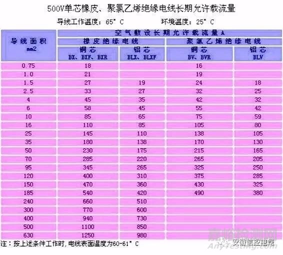 “二點(diǎn)五下乘以九,往上減一順號走”說的是2.5mm’及以下的各種截面鋁芯絕緣線,其載流量約為截面數(shù)的9倍。如2.5mm’導(dǎo)線,載流量為2.5×9=22.5(A)。從4mm’及以上導(dǎo)線的載流量和截面數(shù)的倍數(shù)關(guān)系是順著線號往上排,倍數(shù)逐次減l,即4×8、6×7、10×6、16×5、25×4。
