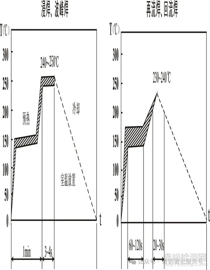 圖1 有引線多層瓷介電容器浸焊、波峰焊溫控曲線